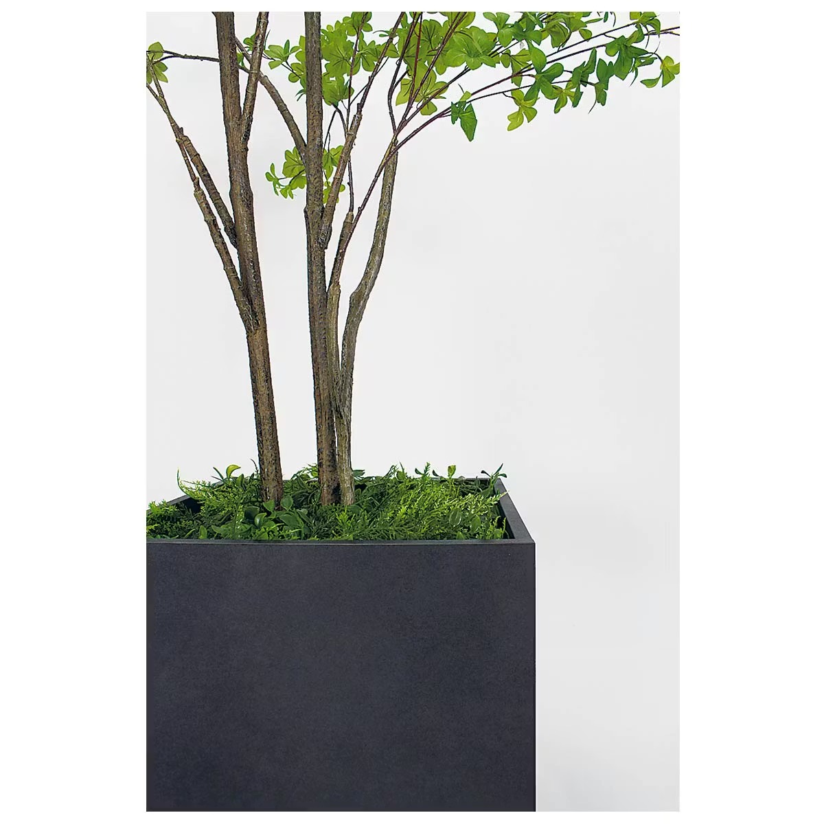 観葉植物に代わる人工樹木のプランタータイプ。人気の樹木を揃えたスタンダードなボックスプランターです。