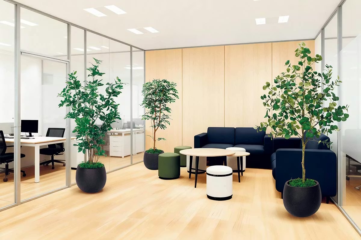 お手入れ不要で、置くだけの手軽さとインテリア調の装飾デザインが魅力の樹木プランターはいろいろなシーンでお使いいただけます。